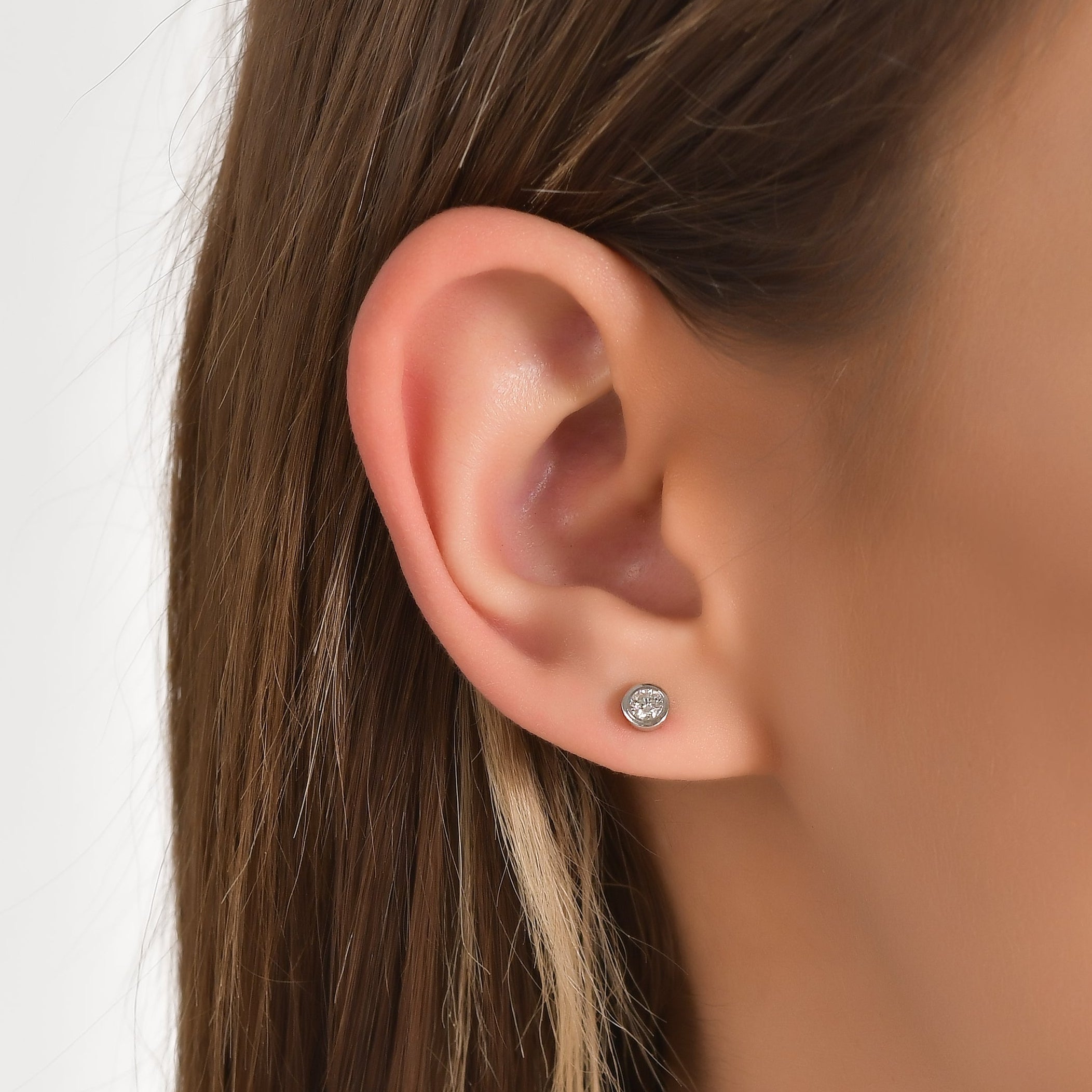 0,20 Karat Doğal Pırlanta Bezel Tasarımlı Çivi Küpe | LONDIA
