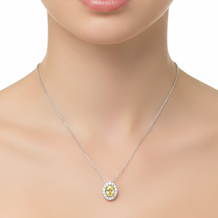 0,40 Karat Fancy Yellow Pırlanta Oval Tasarımlı 14 Ayar Altın Kolye