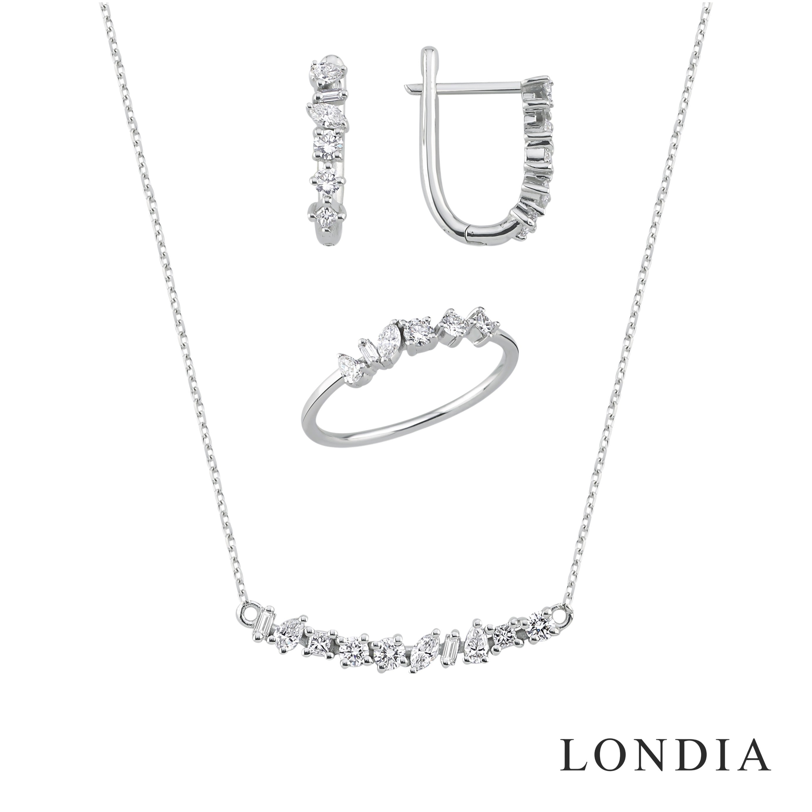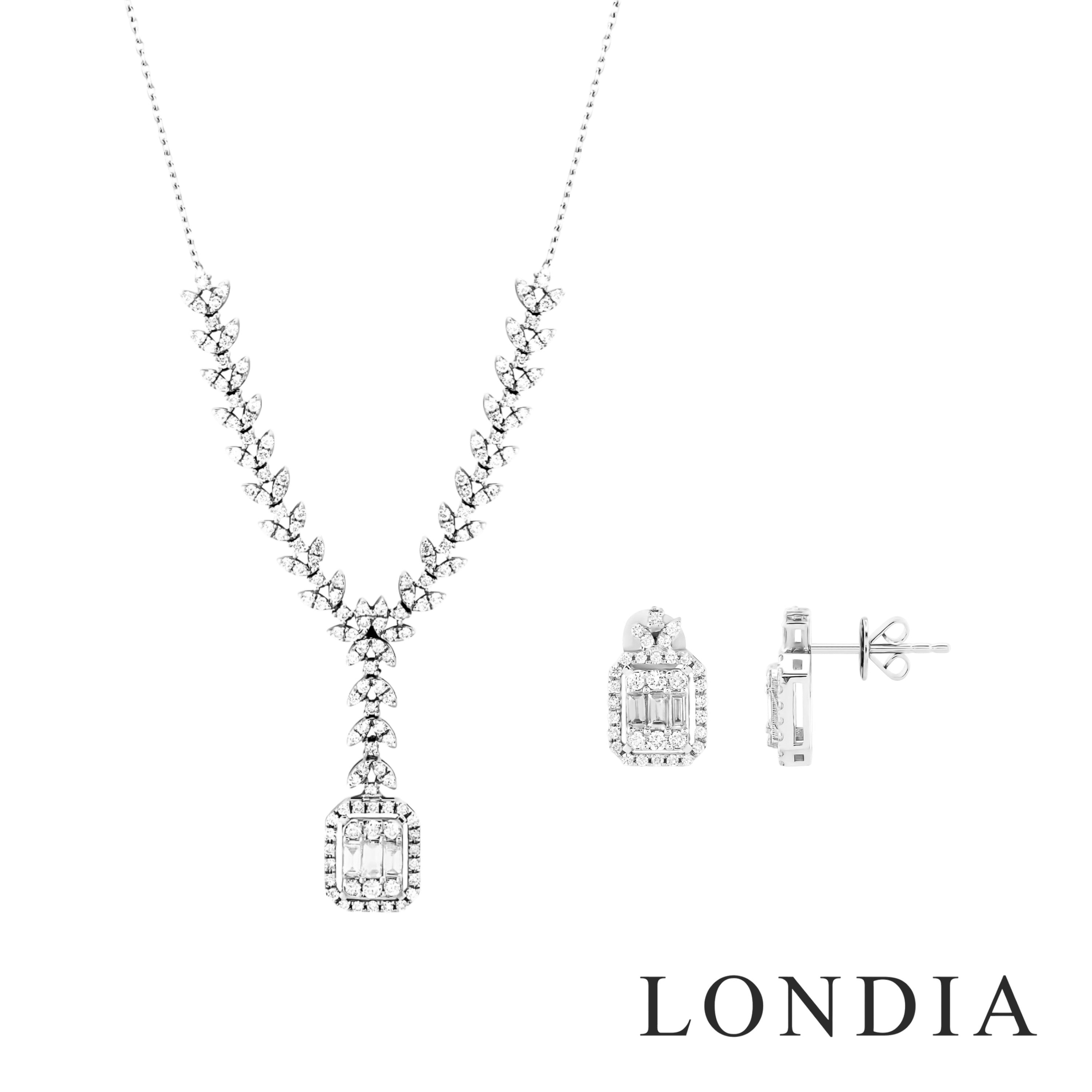 Doğal ve sertifikalı pırlantalarla tasarlanmış pırlanta setler. Kolye, küpe ve bileklikten oluşan şık takım modelleri Londia Pırlanta’da.