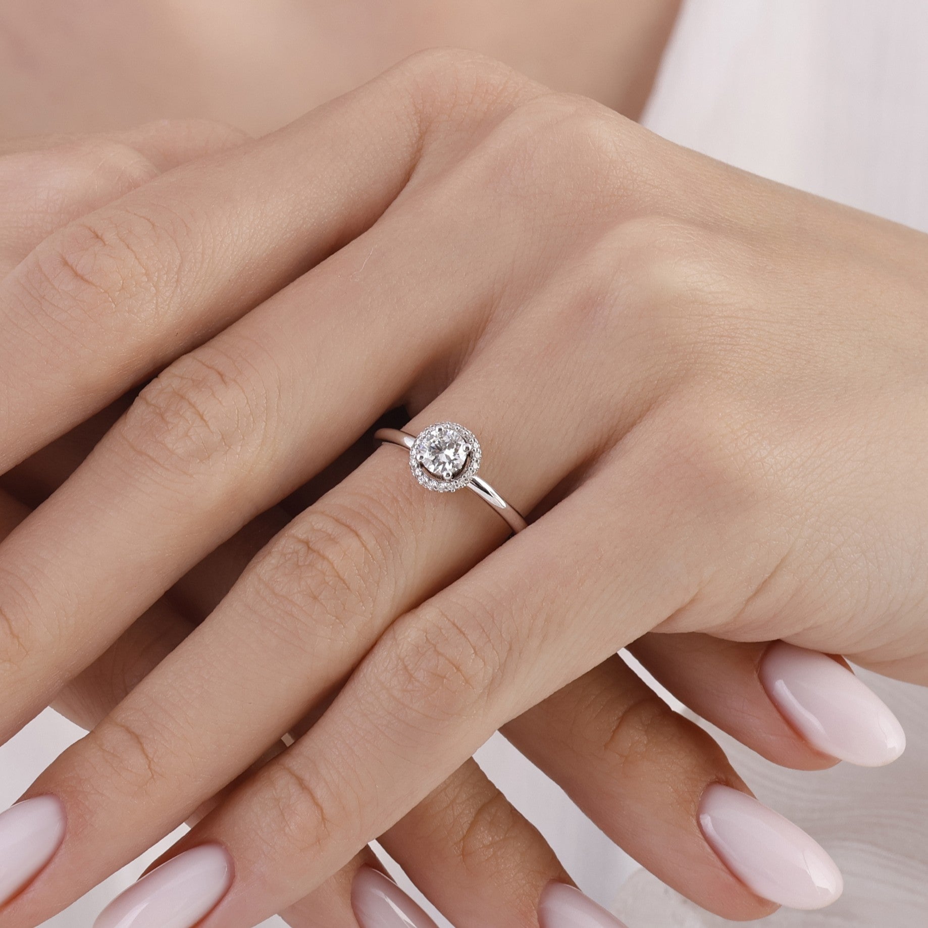 14 Ayar Altın 0,45 Karat Doğal Pırlanta Embrace Halo Tasarım Yüzük