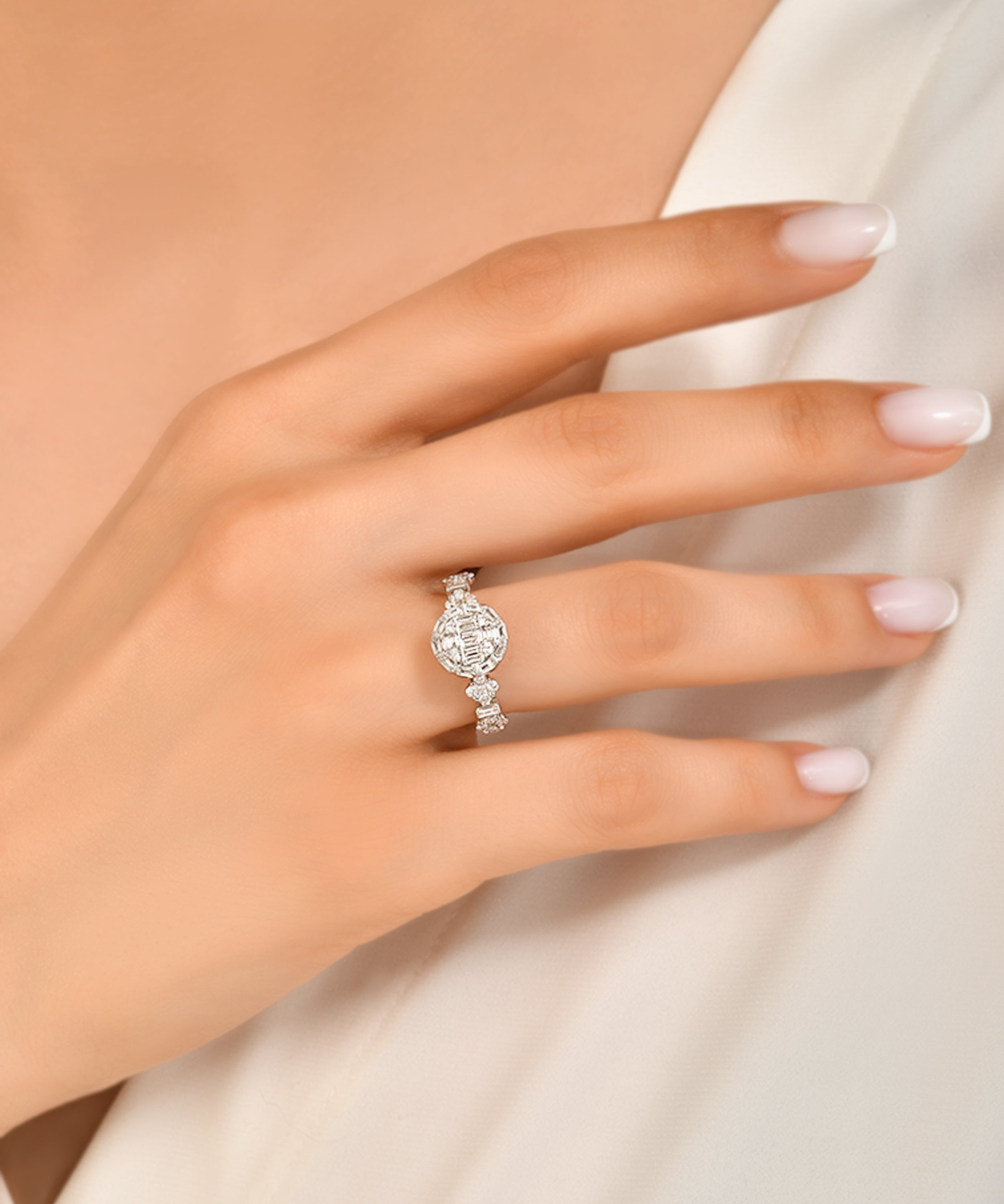 18K Altın 0,95 Karat Doğal Pırlanta Gösterişli Tasarım Yüzük