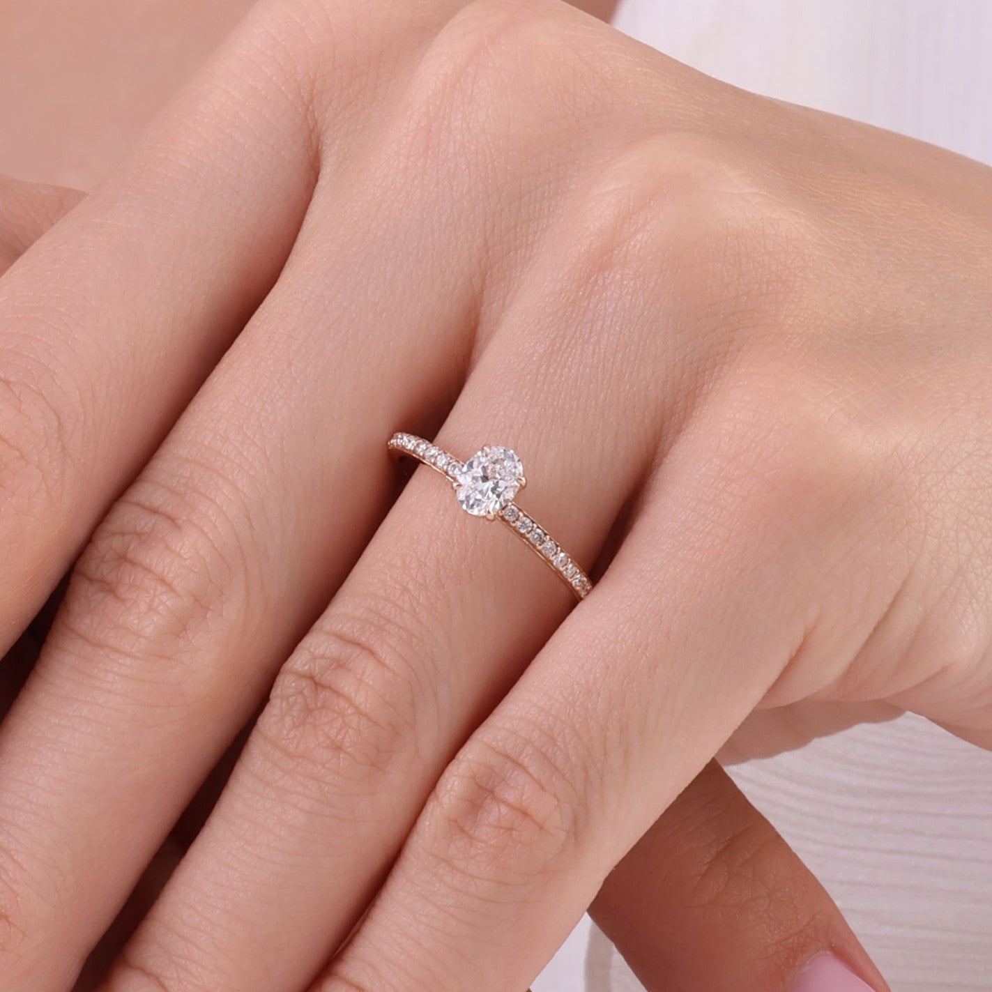0.65 Ct. Doğal Pırlanta Oval Tektaş ‘Yan Taşlı’ Yüzük, 14 Ayar Altın