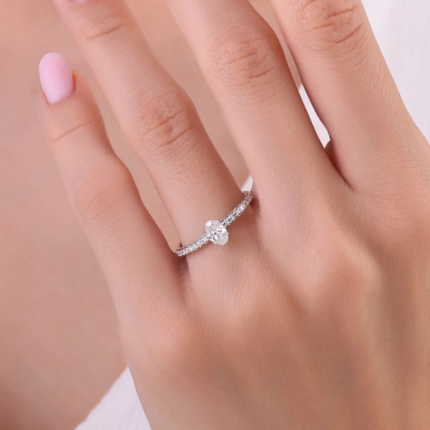 14 Ayar Altın 0,55 Karat Doğal Pırlanta Oval Tektaş “Yan Taşlı” Yüzük