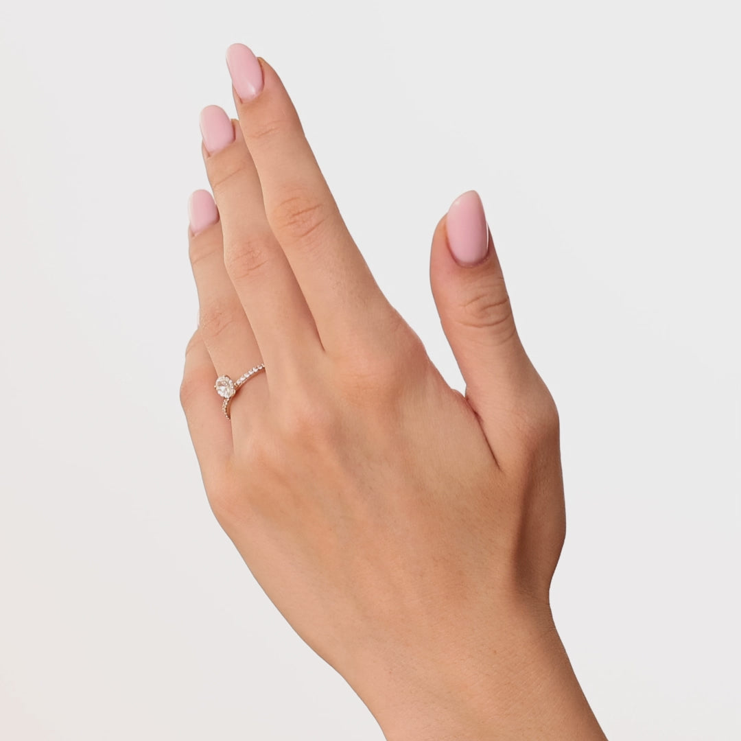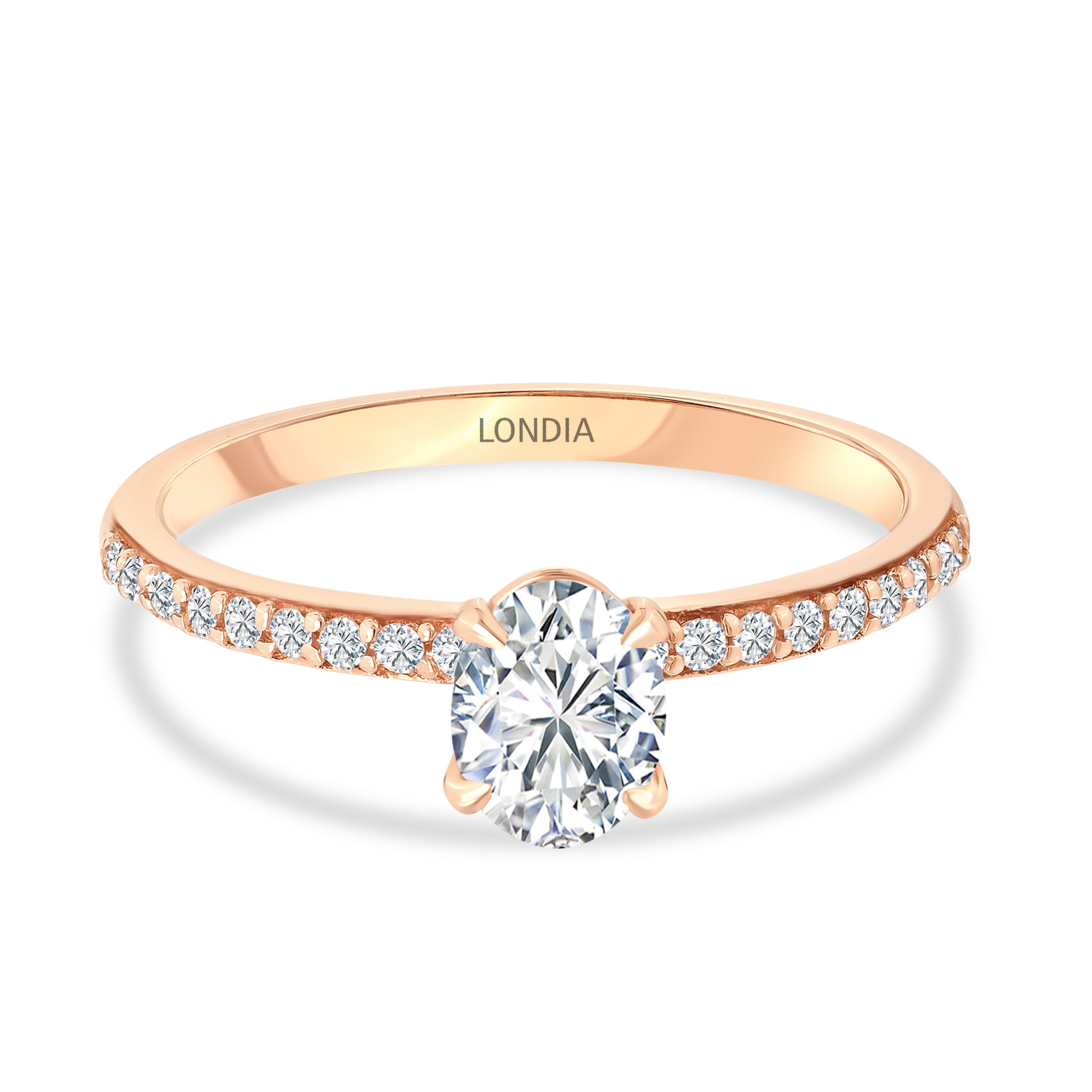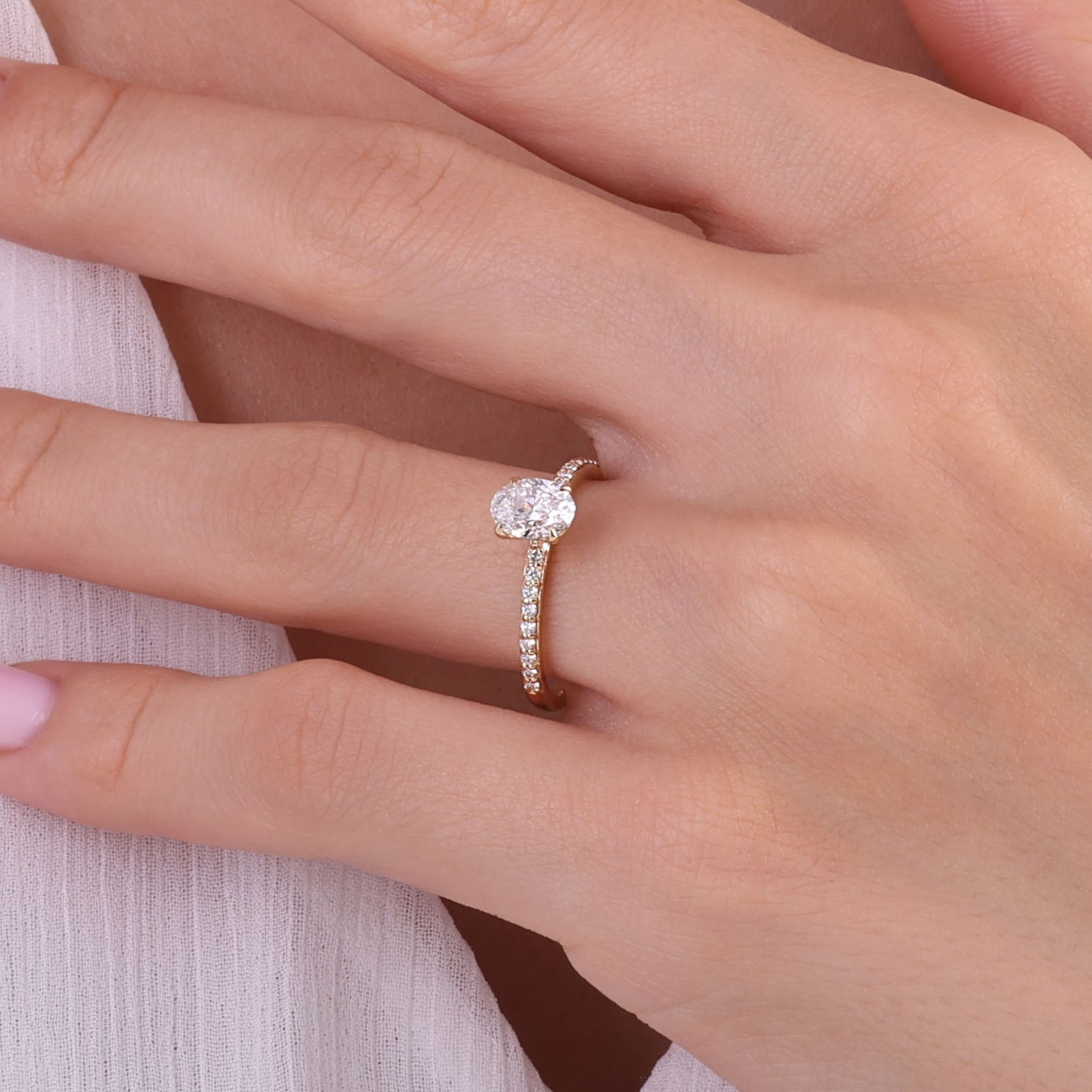 14 Ayar Altın 0,85 Karat Doğal Pırlanta Oval Tektaş “Yan Taşlı” Yüzük