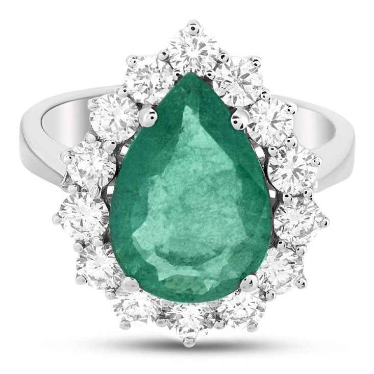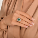 1,25 Ct Doğal Pırlanta ve 3,55 Ct Doğal Zümrüt Halo Yüzük 18K Altın