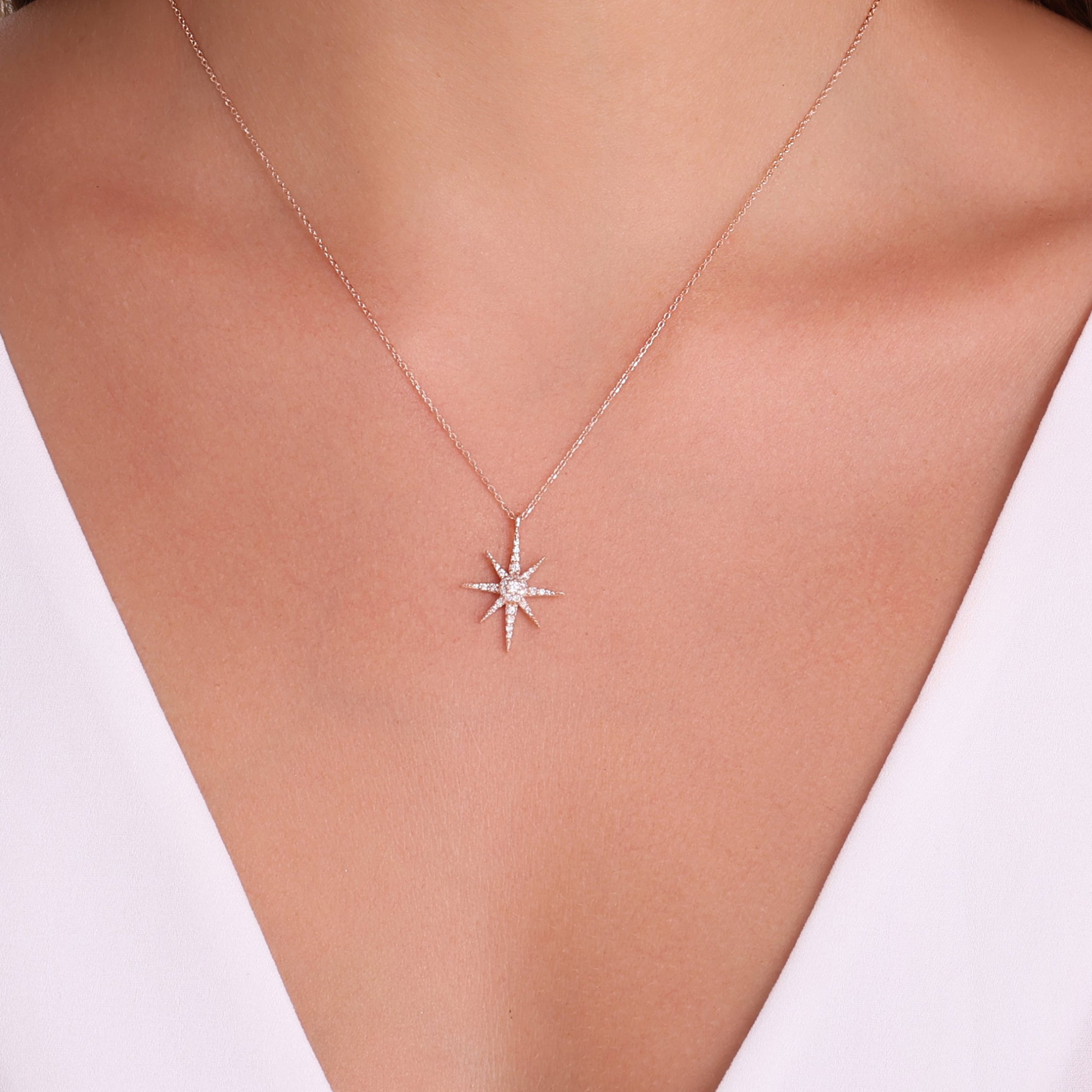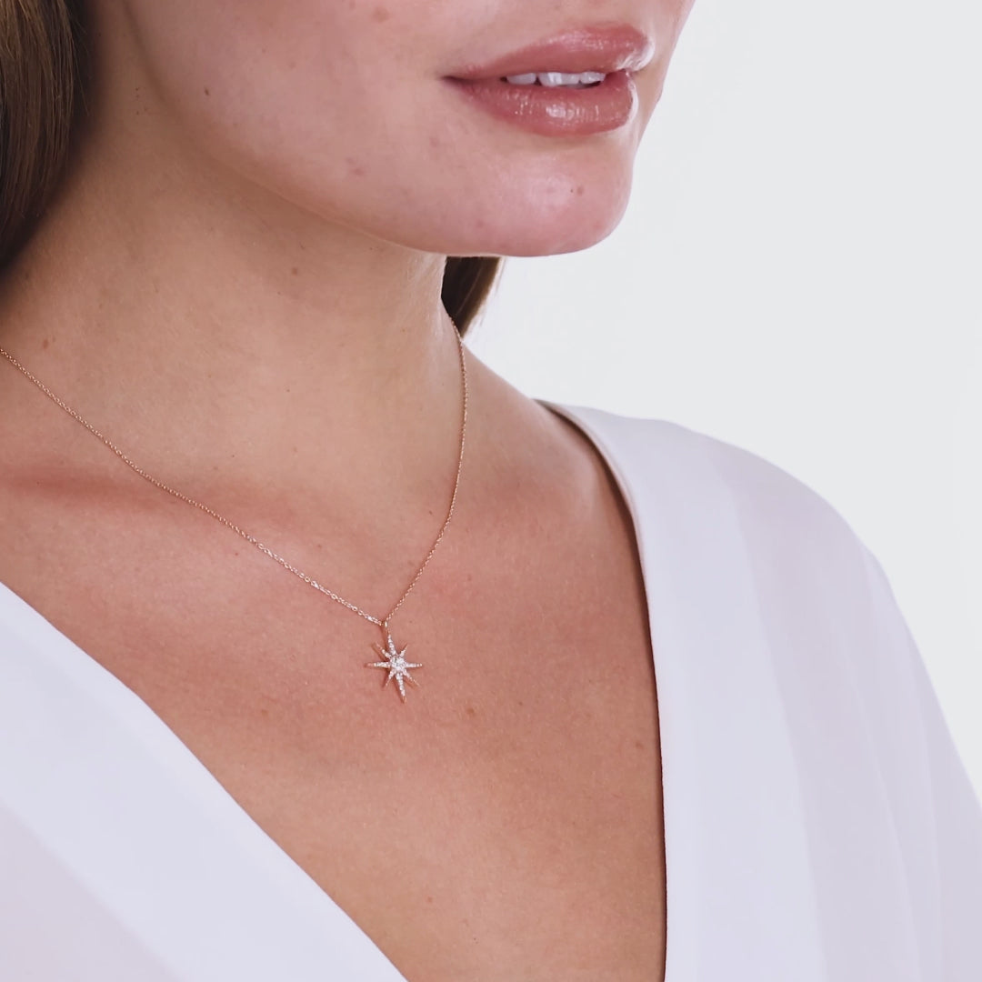 0,17 Karat Pırlantalı Yıldız Tasarım Kolye, 14 Ayar Saf Altın